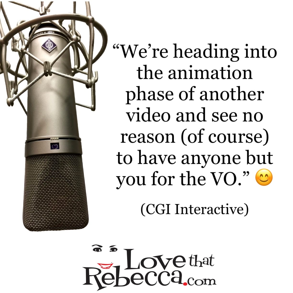Rebecca has provided excellent voice over work on several of our eLearning projects; she is able to express a variety of 'attitudes' and 'styles' with her voice to meet a particular project's needs. A fellow instructional designer originally recommended her when we needed a female voice over artist to satisfy a client's long wish list of the voice they wanted; Rebecca delivered admirably. We've since used her for other eLearning projects and will hire her again.